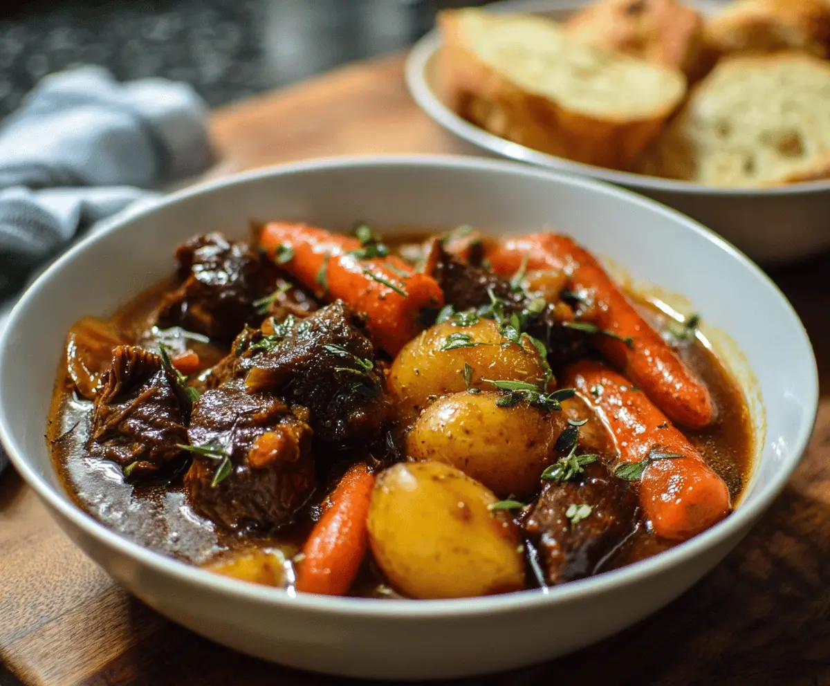 There you have it! Your flavorful Red Wine Beef Stew with Carrots & Potatoes is ready to be enjoyed. Cozy up and dig in!