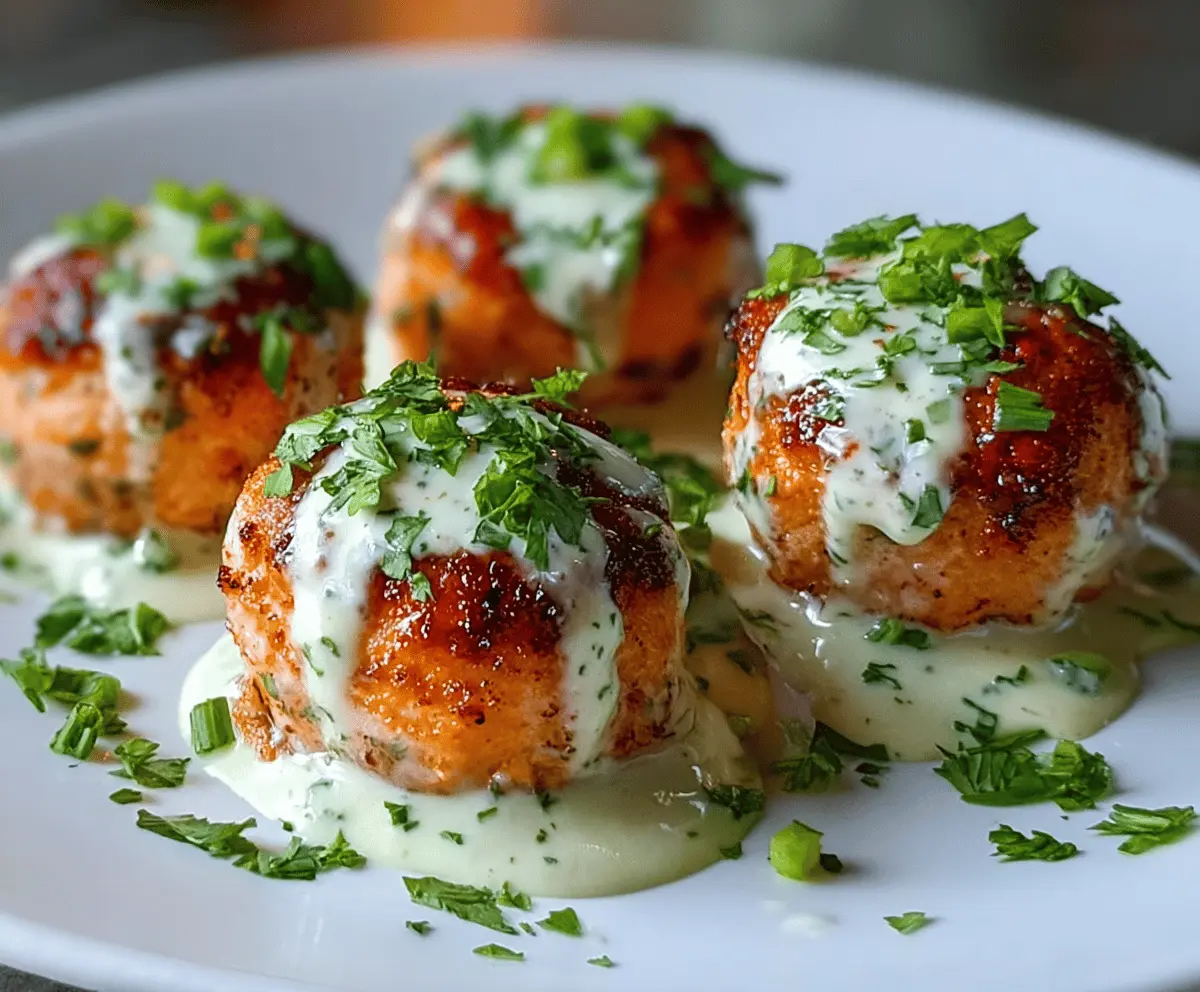 These salmon balls are a fun and tasty treat! They are made with fresh salmon mixed with herbs and spices, then cooked until crispy. The creamy avocado sauce adds a rich touch.