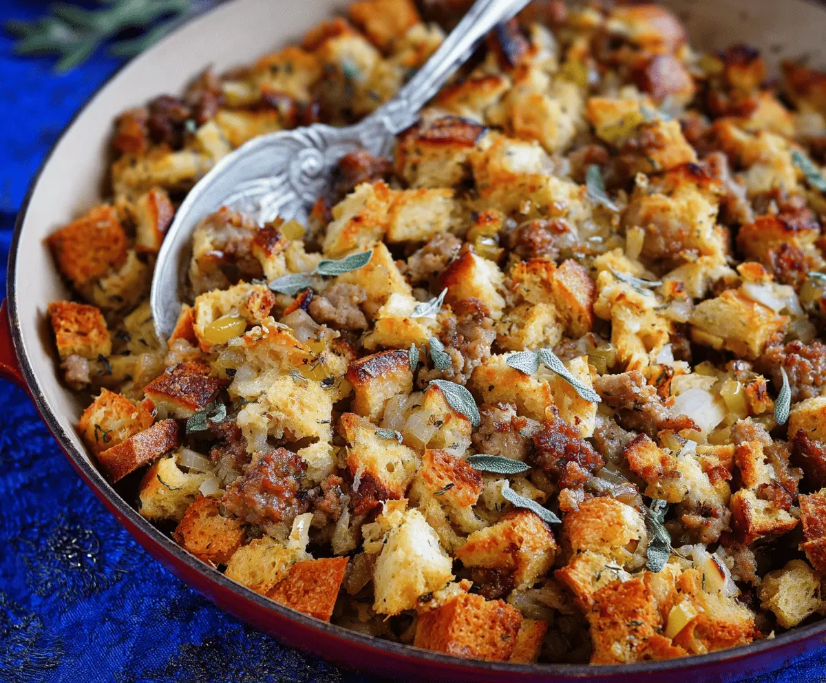 This recipe yields a wonderfully moist stuffing with tender apples, fragrant sage, and savory sausage mixed with crisp bread cubes. It’s perfect for your holiday table or any cozy gathering!