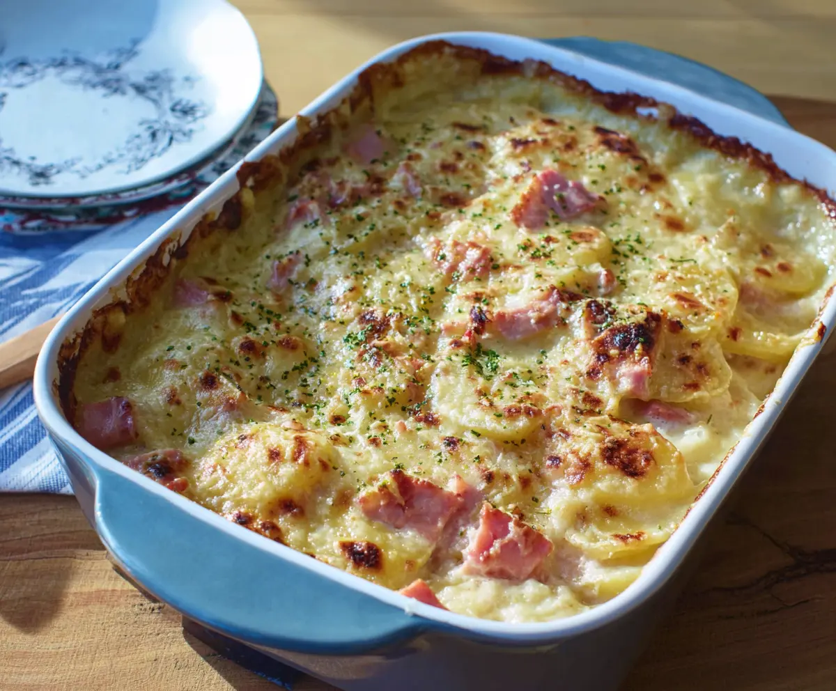 Scalloped potatoes and ham is a creamy and cheesy dish that’s perfect for any meal! Layers of tender potatoes and slices of ham are baked with a rich cheese sauce.