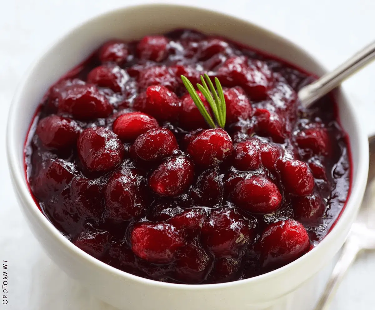 Once your sauce is ready, turn off the slow cooker and let the sauce cool for a few minutes. It will thicken even more as it cools. Transfer the cranberry sauce to a serving bowl, and if you like, garnish it with a sprig of fresh rosemary for a lovely touch.