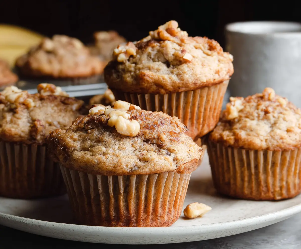 If you like, sprinkle some extra walnuts and a little bit of brown sugar on top of each muffin for a crunchy topping.