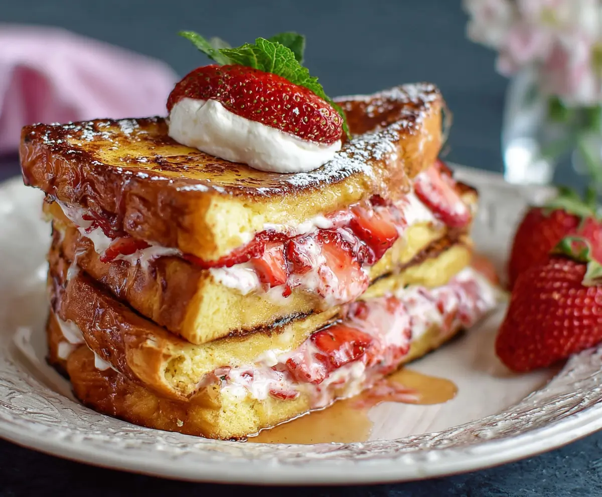 Serve immediately while hot and enjoy your delicious Strawberry French Toast with family or friends!