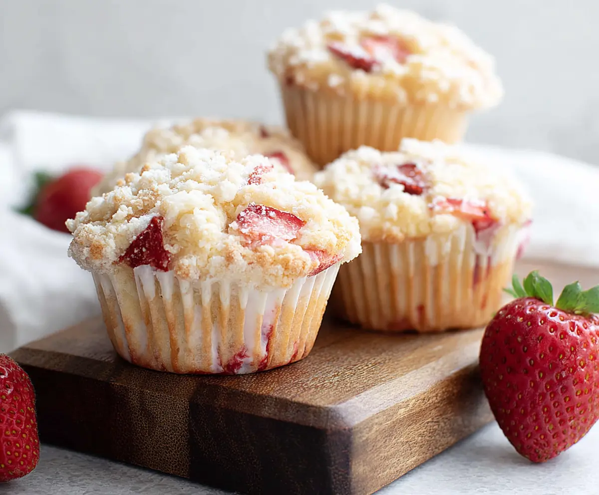 These Strawberry Shortcake Muffins are fluffy and sweet, packed with fresh strawberries. They’re just like your favorite dessert, but in a handy muffin form!