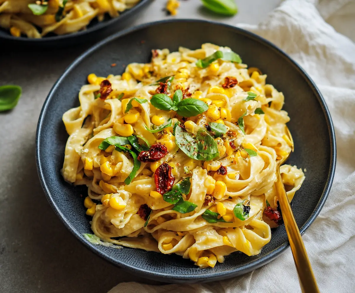 Serve your sweet corn pasta immediately, garnished with fresh basil leaves and an extra sprinkle of red pepper flakes if desired. Enjoy every bite of this vibrant and delicious meal!