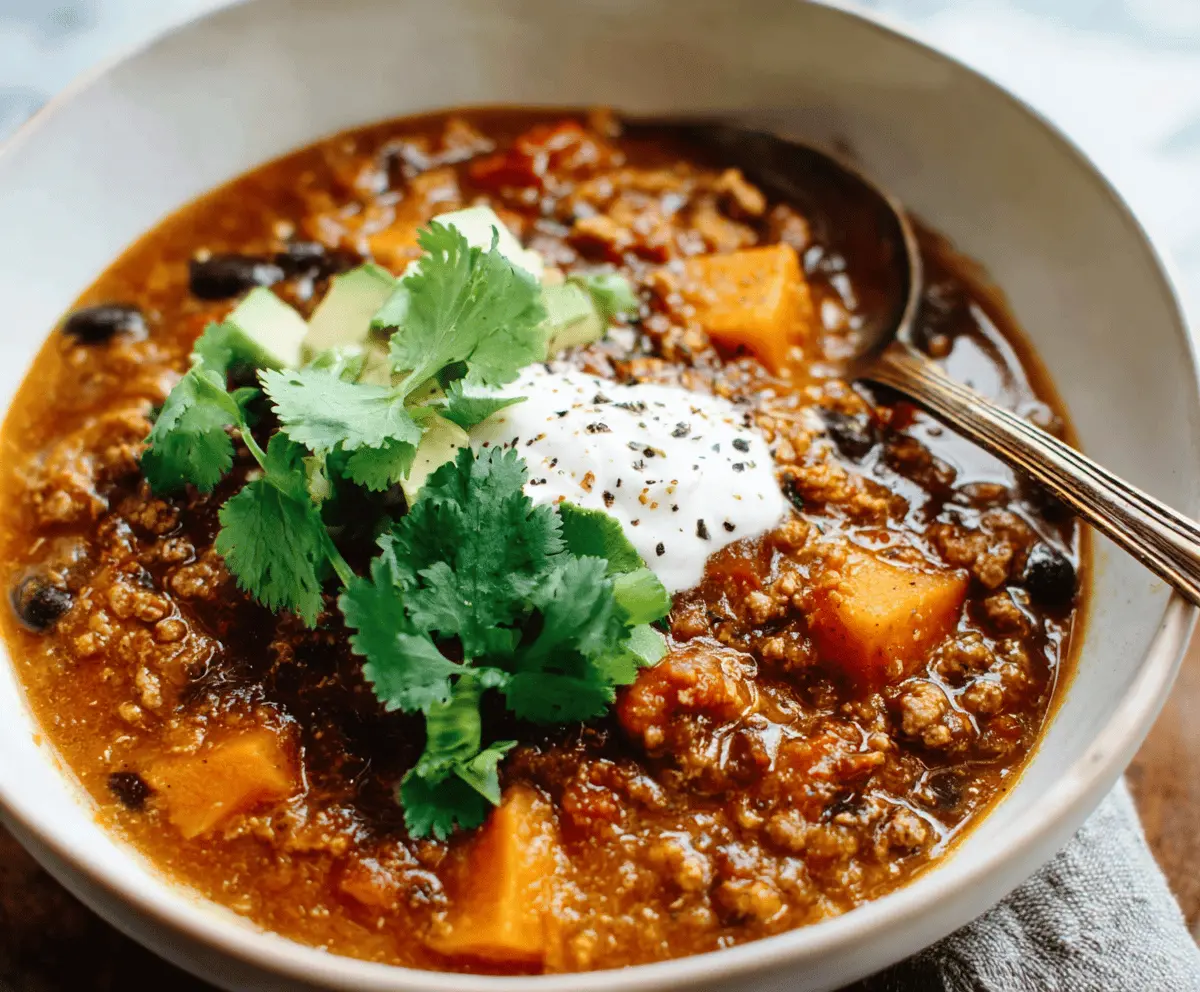 This Sweet Potato Turkey Chili is a warm and hearty dish that’s packed with flavor. Tender turkey and sweet potatoes dance together in a spicy sauce that’s perfect for cozy nights!