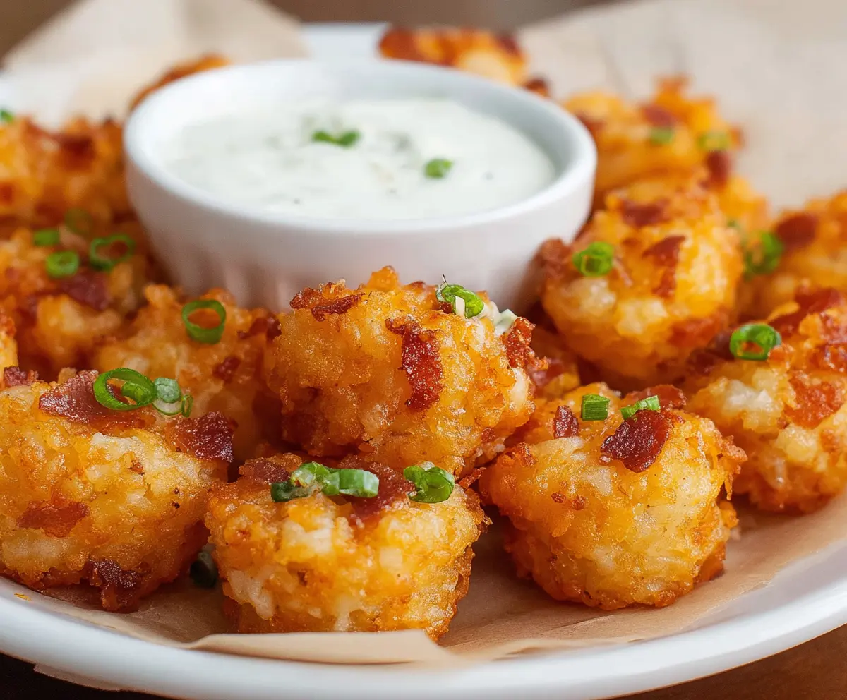 These crispy, cheesy tater tot bites with bacon and green onions are perfect for parties, snacks, or just because! Enjoy your delicious creation!