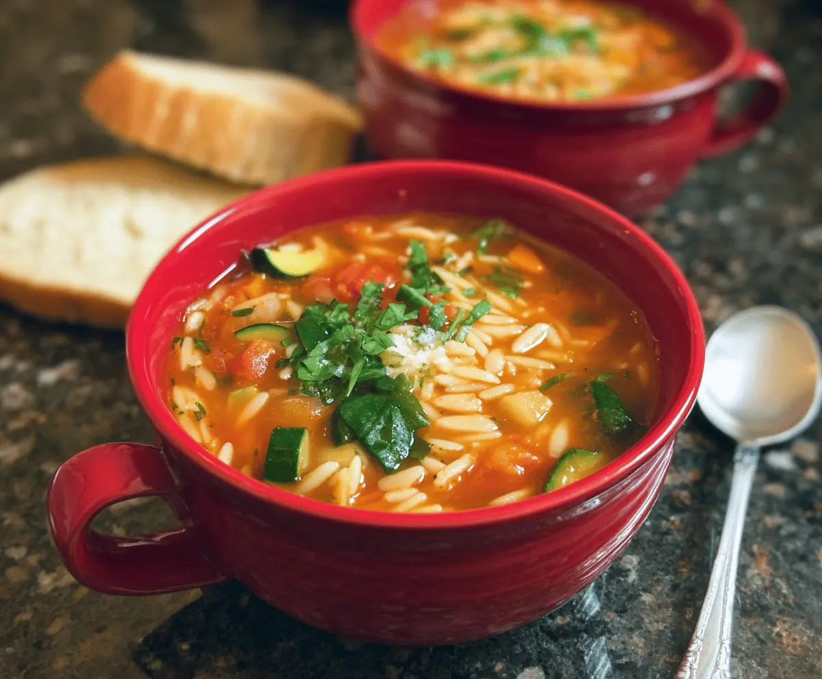 This vibrant soup combines tender orzo pasta with a colorful mix of vegetables in a light, flavorful broth, making it both comforting and wholesome. Enjoy your homemade soup!