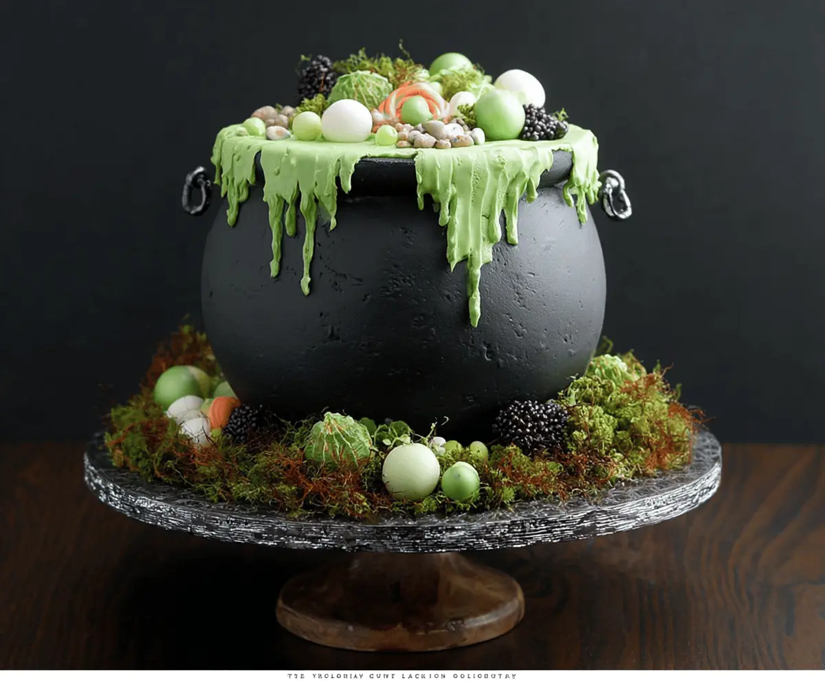 - Optional: pipe green buttercream or fondant “slime” drips on cauldron